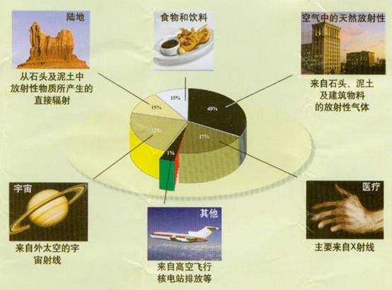 人們受到的放射性照射大約有82%來自天然環境,大約有17%來自醫療診斷,而來自其他活動大約只有1%。